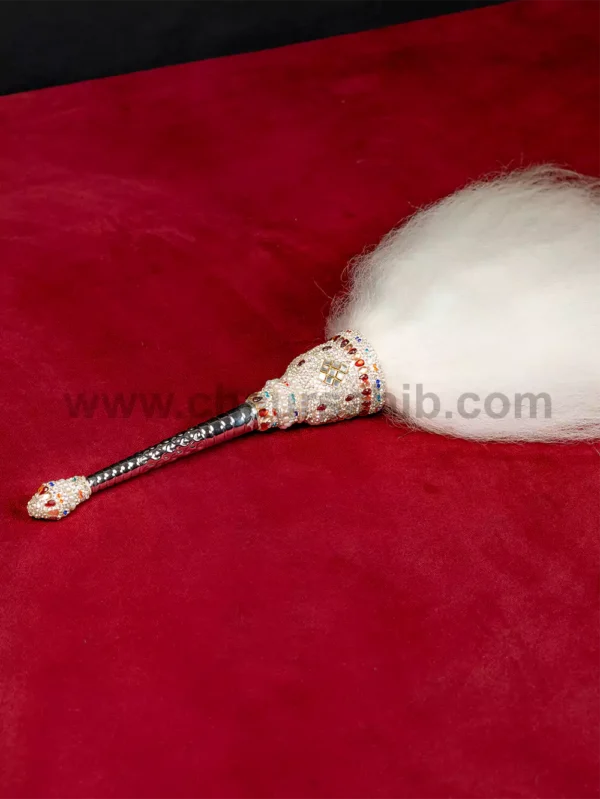 Royal & Premium Steel Polished Handle Stone Work Engraving Chaur Sahib With Original Yak Hair